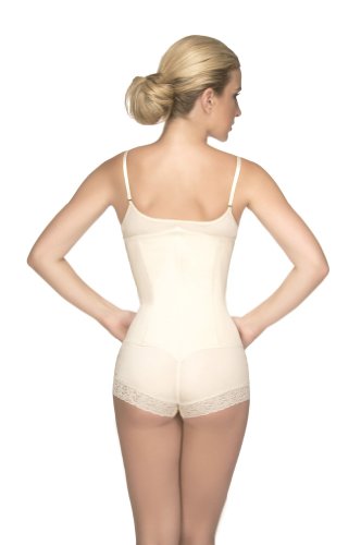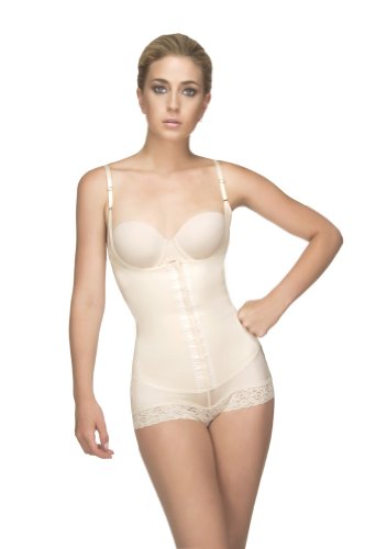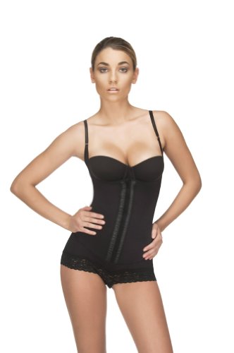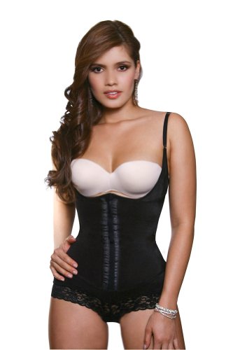This corselette body shaper will flatten your midsection and shape your body while you wear it! Wear it under everyday clothes or on special occasions for a more attractive figure. Fasten the row of eye and hook closures into place and adjust the straps. Then use it all day with confidence as the flexible material accommodates to your body's curves. This item and all of our items have an opening for easy bathroom use.