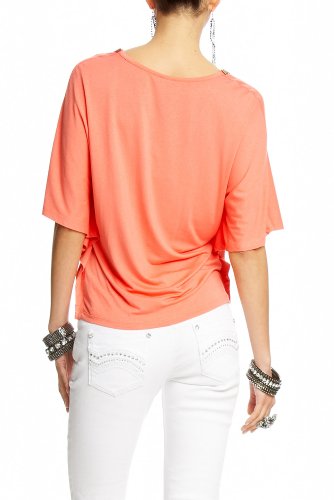 Exude boho-cool in this 2b soft tee with crochet neckline trimmed with wooden beading, and dramatic sleeve design. Boost the it-girl factor by pairing it with a maxi skirt. Center back to hem: 23".