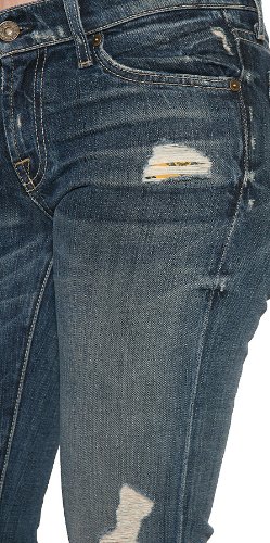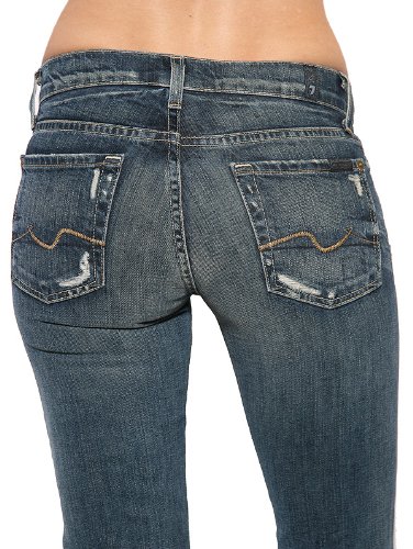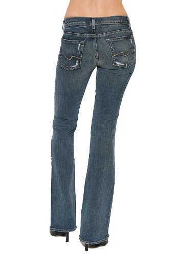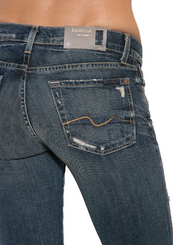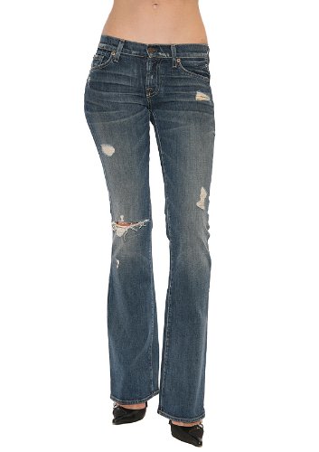 7 For Mankind's original premium jean, the bootcut has a natural rise with a comfortable hip and thigh fit and finishes with a classic bootcut leg opening. This jean features whiskering across the hips, distressing down the legs and back, abrasions, rips, holes, tears, yellow seaming, burnished bronze rivets and button accents, signature embroidered back pockets and zipper/button closure. Material: 98% Cotton, 2% Spandex Style: Boot Cut Wash: VCAL- Vintage California Machine Wash Inside Out in Cold with Like Colors & Tumble Dry Low Runs True to Size / Refer to Measurements Below Manufacturer Style # U075525S Designer Bio: The Seven For All Mankind Denim Company was launched in Los Angeles California in 2000. Seven Jeans literally exploded on the scene and earned critical acclaim for their innovative use of fits, fabrics and finishes in denim. This denim line has become both an established modern classic for its sophisticated fits as well as a leading trendsetter for its newest fashion forward washes and designs.