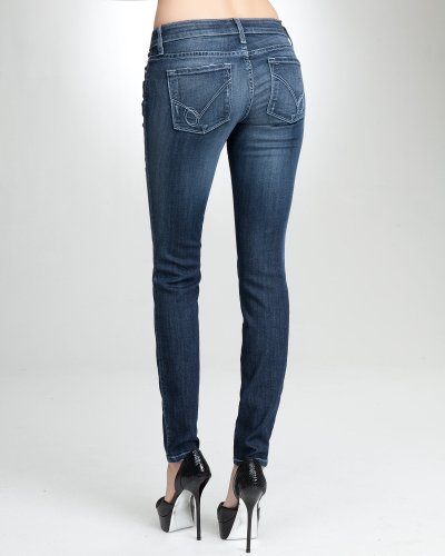 Sculpt a lean silhouette in this classic 5-pocket bebe skinny jean. Whether you go for the dark, blue or white wash, this denim is sure to provide effortless style with comfortable all-day stretch. The best part? It goes with anything from casual dolman tops to sexy bustiers. Rise: 8". Inseam: 32". Leg opening: 10.5"