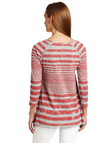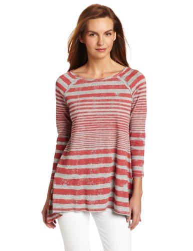 Longer length tees are great to wear over leggings when you want something easy to wear. We created this 3/4 sleeve tee with distressed stripes in a variety of widths to give you a tunic with style and comfort