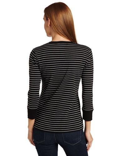 Jones New York Women's Striped V-Neck Tee With Ribbed Trim