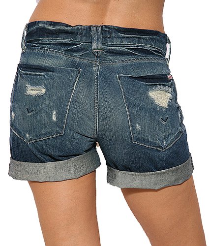 This boyfriend jean short from Hudson features whiskering across the hips, distressing, tears, rips, holes, abrasions, clean back pockets with logo detailing, burnished gold accents, 1.5" cuffed leg and a button fly closure. Material: 100% Cotton Manufacturer Style # W657DGG Machine Wash Cold With Like Colors Runs True To Size / Refer to Measurement Guide Designer Bio: Hudson Jeans are known for their signature v back pockets. This classic-style line of denim includes jeans that are frayed, blasted, whiskered and worn. These jeans are comfortable yet sexy and are sure to become one of your personal favorites.